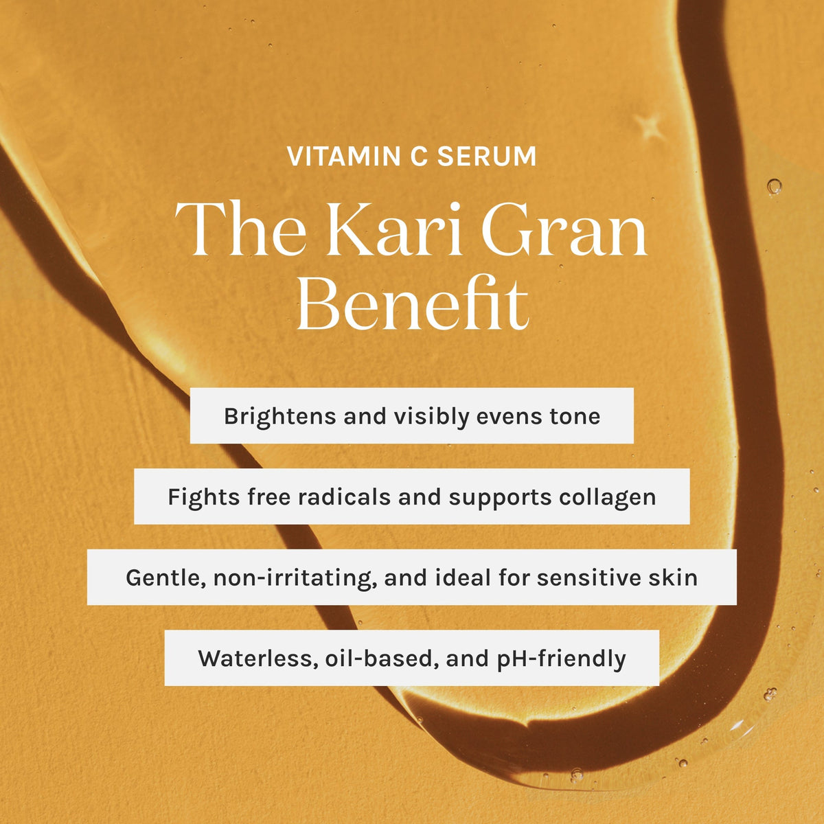 A concentrated, stable, waterless 10% vitamin C oil-based serum that hydrates, evens skin tone, brightens, and fights free-radical damage.  Brightening powerhouse THDA (Tetrahexyldecyl Ascorbate) delivers your daily dose of glow while an Organic Antioxidant Super Blend of Plum Seed, Cloudberry, and Lingonberry oils nourishes and strengthens skin.